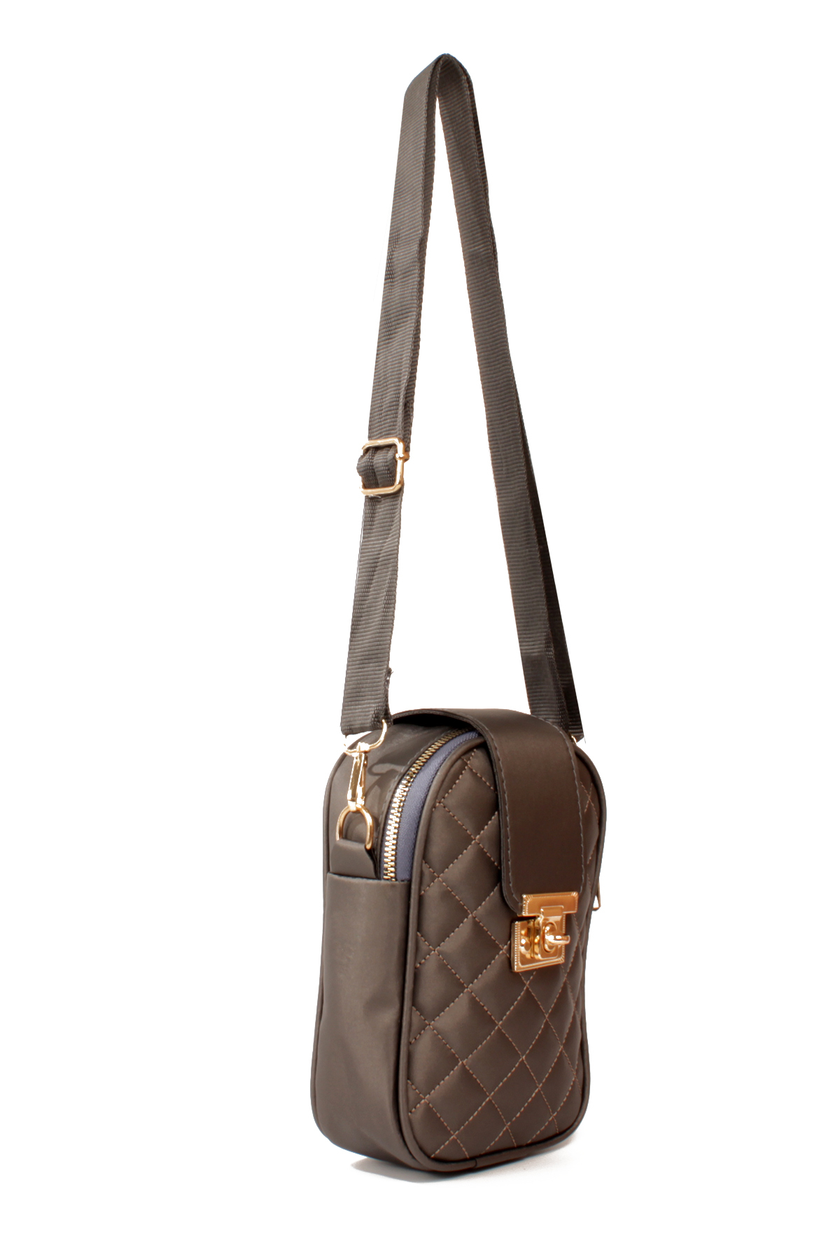 Kadın Saten Doku Fermuarlı ve Üst Kemer Kilitli Kolon Askılı Kapitoneli Telefon Omuz Çantası (20814)