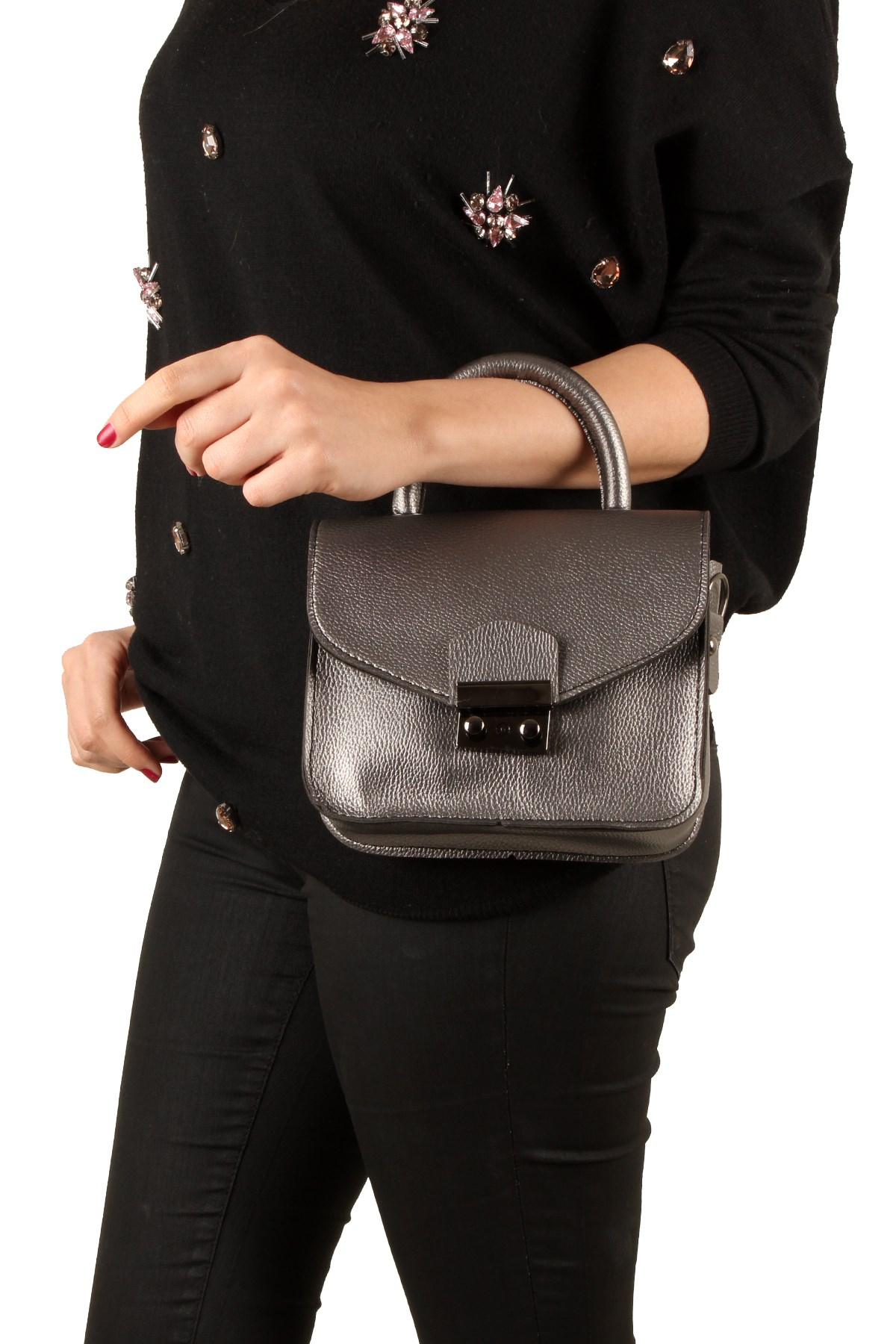 Gümüş Kadın El ve Omuz Çantası (LWE20119-GMŞ)